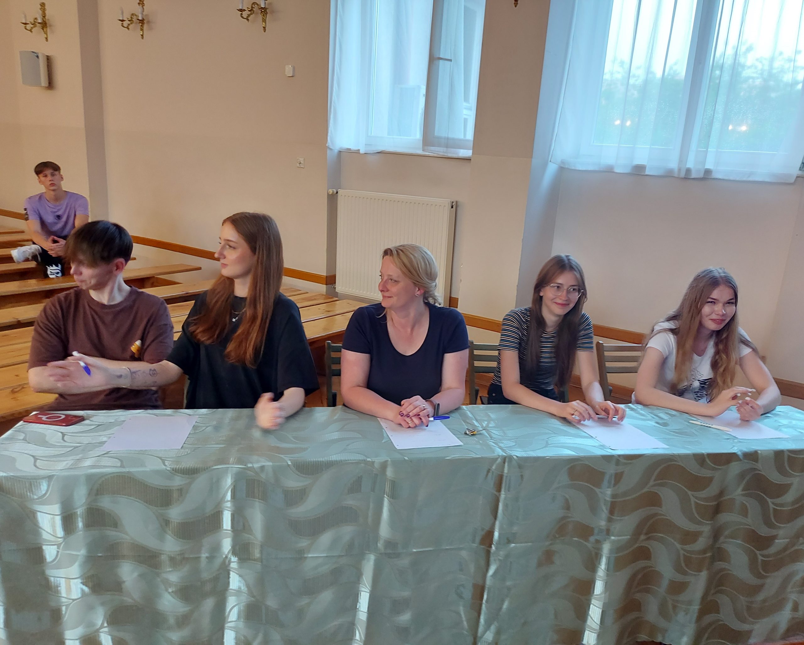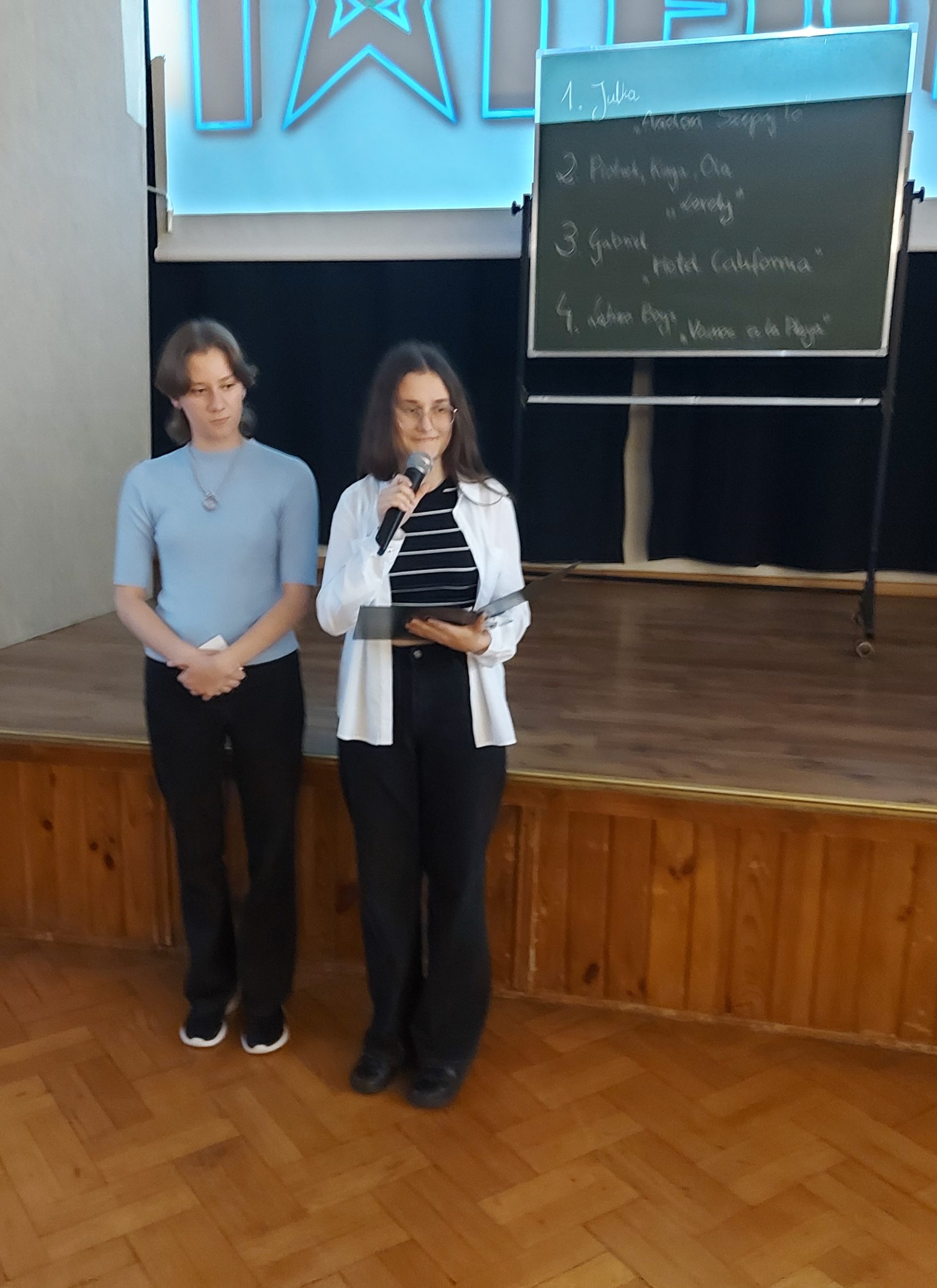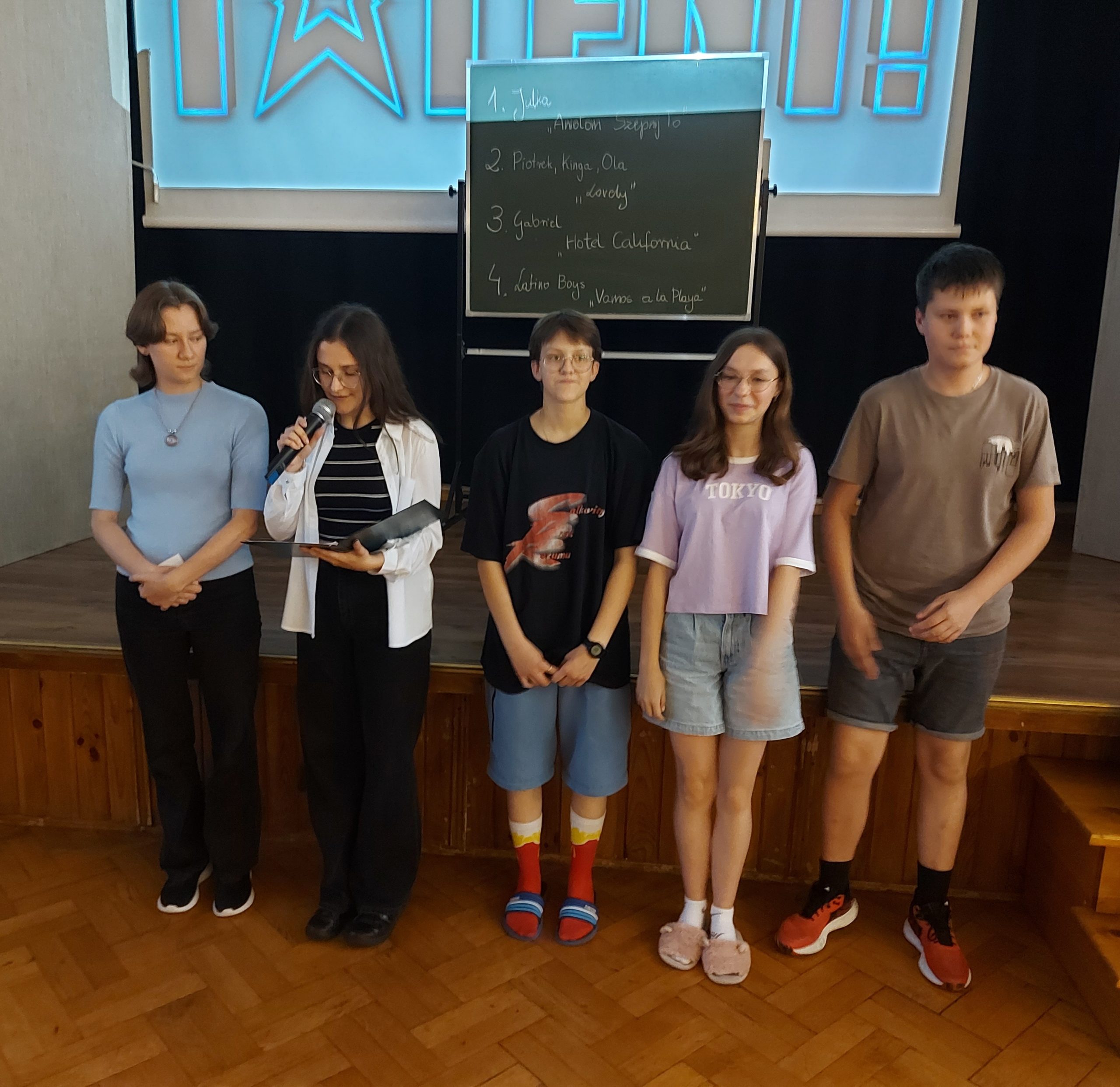 Młodzież w Internacie świętowała Dzień Dziecka. Z tej okazji 4 czerwca odbyła się kolejna edycja internackiego „Mam Talent” zorganizowana przez wychowanki z klasy III Alę i Magdę przy wsparciu wychowawczyń p. A. Sagan i p. E. Krawczyk. Przed jury i licznie zebraną publicznością swoje talenty zaprezentowali Julka, Ola S., Tosia, Olga, Gabryś, Piotrek, Kinga, Ola M. Niekwestionowanym zwycięzcą okazał się Gabryś, który wykonał utwór „Hotel California”. Gratulujemy! Uczestnikom konkursu p. kierownik M. Jóźwina-Myka, nie tylko ufundowała, ale też osobiście przygotowała pyszny deser lodowy. Zgromadzona na internackiej imprezie młodzież została też poczęstowana owocowymi cukierkami ufundowanymi przez wychowawców.