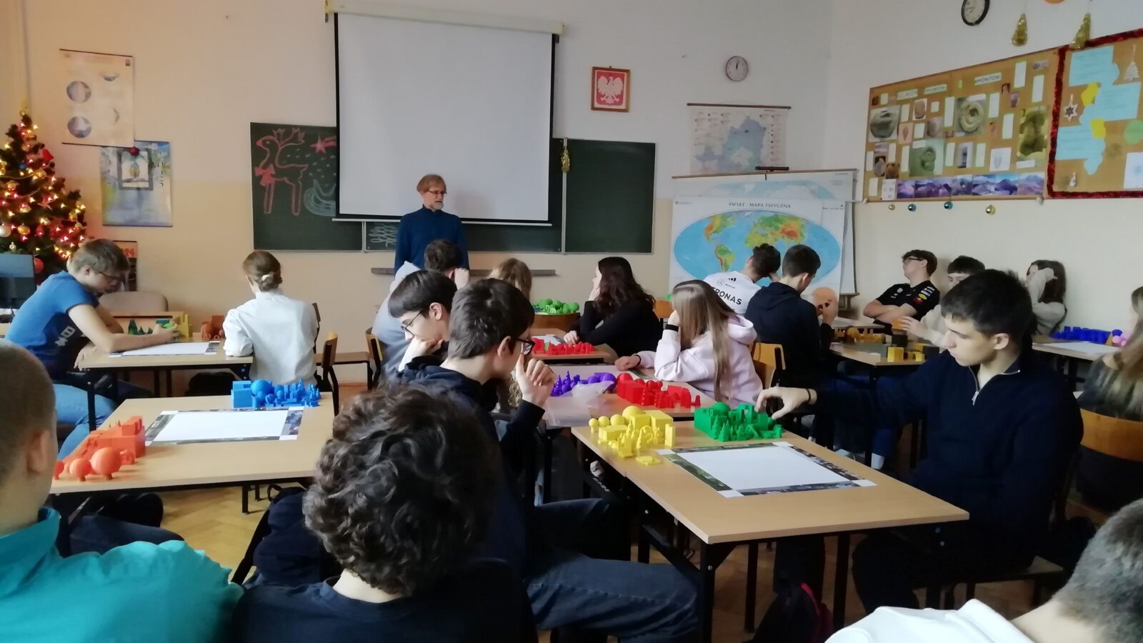 18.12.2025 r. klasa 3G miała przyjemność wziąć udział w warsztatach w formie gry planistycznej Szachy krajobrazowe z wykorzystaniem elementów przestrzeni stworzonych w technice druku 3D. Warsztaty dotyczyły planowania krajobrazowego, rozumienia krajobrazu, jego funkcji, kreatywnego tworzenia przestrzeni miejskiej z zachowaniem ładu przestrzennego i harmonii, a poprowadził je twórca gry planistycznej – członek Forum Kultury Przestrzeni przy Prezydencie Miasta Lublin oraz animator kultury Ośrodka Brama Grodzka Teatr NN- pan Marcin Skrzypek.